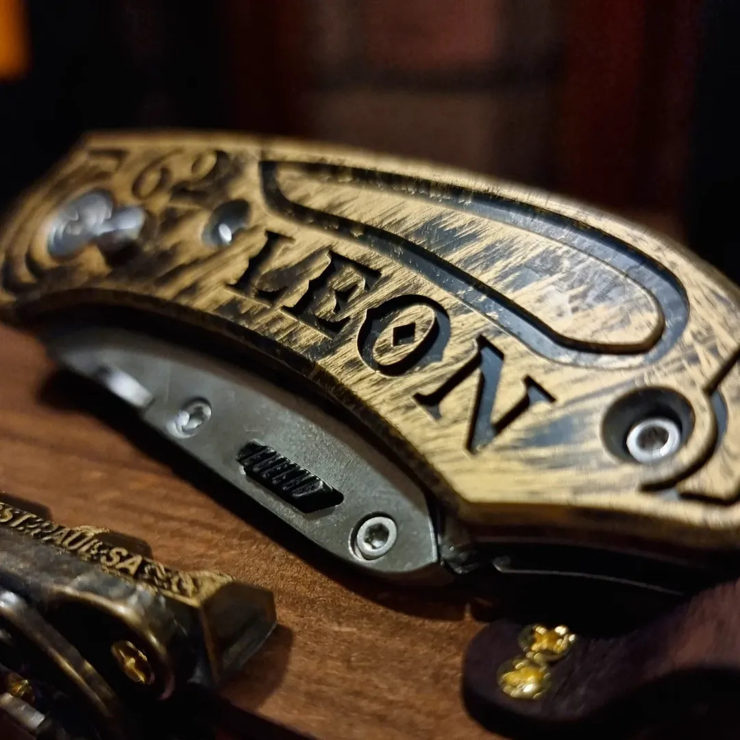 A totaly unique and personal utility knife is an awesome gift. Comes with spare SK5 blades. The steel of the knife is precision ground stainless steel. Click here to WhatsApp me. Any ideas are welcome, the more personal we can get, the better!